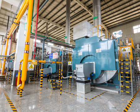 YQL series gas and oil-fired thermal fluid heater adopts 3-trips round coil tube structure. The coil tube end adopts beam port to effectively protect the furnace all at boiler end, is equipped with advanced combustion device, and with fully automatic operation. After furl ignition from burner, it forms a flame full fill into the round furnace tube, and through the furnace tube wall, the heat is transferred by radiation, which is the first pass. The high temperature flue gas after combustion gathers at rear furnace door and then turns into the second trip, which is convection tube area.